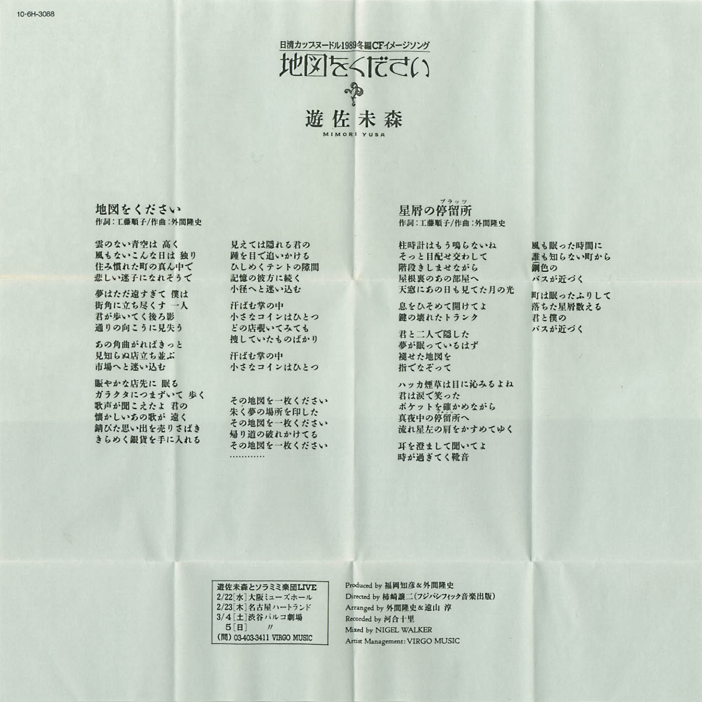 地図をください ミュージックテープ(歌詞カード表面)